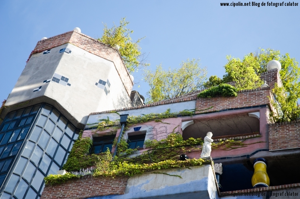 • 6. „Casa Hundertwasser” din Viena. Este mai degraba un bloc cu 4,5 etaje unic in Europa. De ce este unic acel bloc? are arbori care ies din balcoane, de pe acoperis dar si din tencuiala blocului.. Eu asa ceva nu mai vazusem si am ramas uimit 🙂 O sa vedeti fotografii in albumul foto de mai jos.