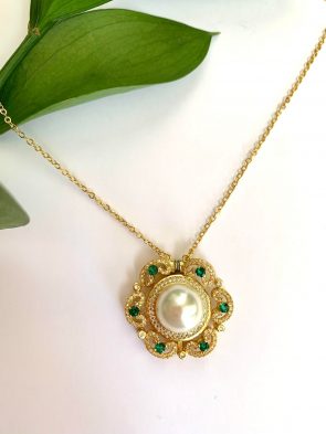Si o ultima recomandare ce mi-a sarit in ochi ar fi acest medalion superb cu perle si zirconiu placat cu aur si care are pretul de : 140 lei/£24.00
