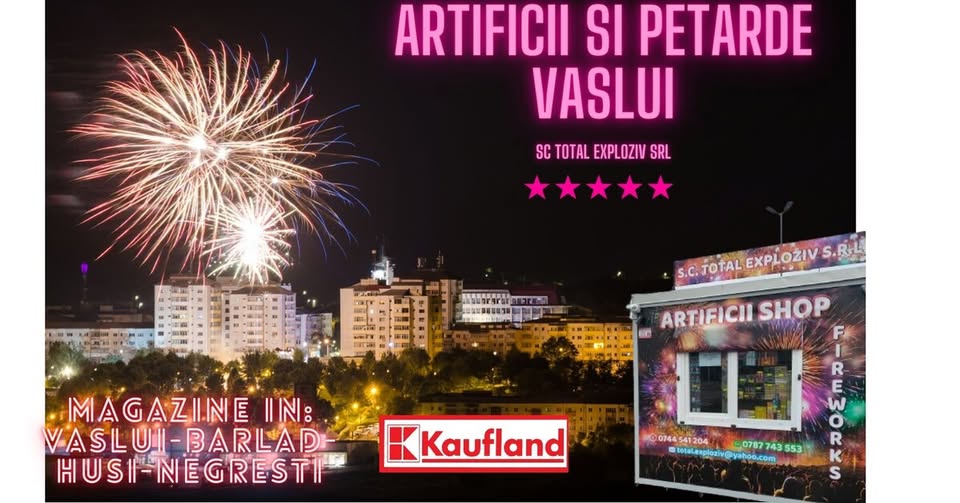 Unde poti gasi magazinele de artificii? La Vaslui si Husi in parcarea Kauflad, la Barlad in parcare la Value Centre, iar la Negresti in fata pietei agroalimentare.